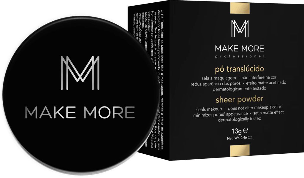 O Pó Translúcido da Make More sela a maquiagem, retirando o efeito de oleosidade, disfarçando linhas finas e promovendo um acabamento matte aveludado espetacular, sem ressecar. Sua textura é ultraleve. Normalmente ser usado após utilização da base e corretivo ou na pele limpa e hidratada para suavizar.